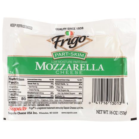 Frigo Cheese, Part-Skim, Low Moisture, Mozzarella - 16 Ounces