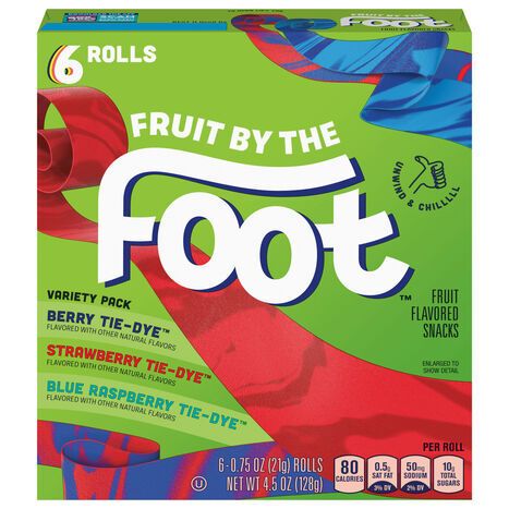 Fruit by the Foot Berry Tie-Dye/Strawberry Tie-Dye/Blue Raspberry Tie-Dye Fruit Flavored Snacks Variety Pack - 6 x 0.75 Ounces