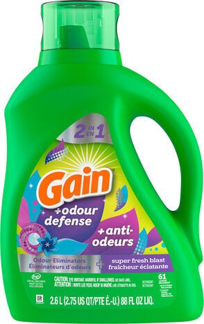 Gain Gain Odor Defense Liquid Laundry Detergent, Super Fresh Blast Scent, 88 fl oz, 61 loads - 2.6 Liters
