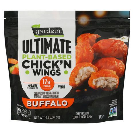 Water, Buffalo Style Hot Sauce (Red Cayenne Pepper, Distilled Vinegar, Water, Salt, Garlic), Enriched Wheat Flour (Wheat Flour, Niacin, Reduced Iron, Thiamine Mononitrate, Riboflavin, Folic Acid), Canola Oil, Vital Wheat Gluten, Soy Protein Isolate, Pea Protein Concentrate, Tapioca Starch, 2% or Less of: Degerminated Yellow Corn Flour, Textured Wheat Protein (Wheat Gluten, Wheat Starch), Salt, Methylcellulose, Corn Starch, Spices, Garlic Powder, Yeast Extract, Natural Flavors, Distilled Vinegar, Onion Powder, Dried Onion, Fructose, Leavening (Sodium Acid Pyrophosphate, Sodium Bicarbonate), Paprika Extractives (Color), Pea Protein, Xanthan Gum, Citric Acid, Titanium Dioxide (Color), Lactic Acid, Sunflower Oil.