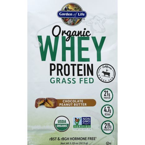 Garden of Life Organic Whey Protein, Grass Fed, Chocolate Peanut Butter - 1.15 Ounces