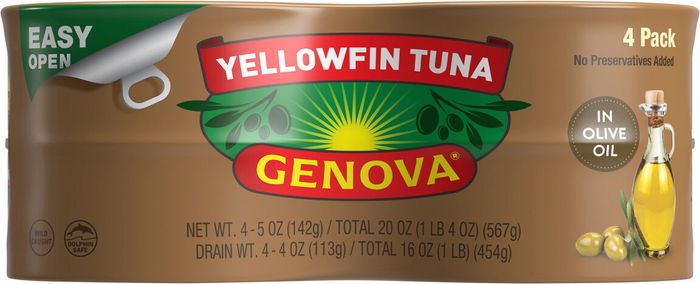 Genova Yellowfin Tuna, in Olive Oil, Wild Caught - 4 x 5 Ounces