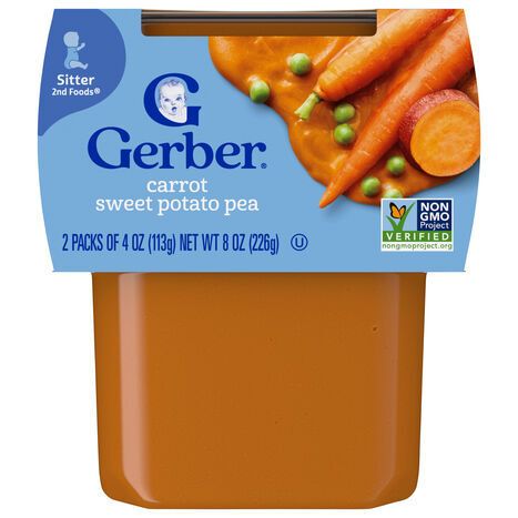 Gerber Carrot Sweet Potato Pea, Sitter 2nd Foods - 2 x 4 Ounces