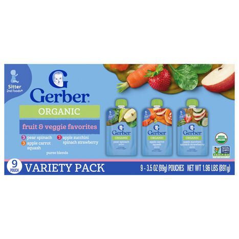 Pear Spinach Ingredients: Organic Pears, Organic Spinach, Water, Vitamin C (Ascorbic Acid), Organic Lemon Juice Concentrate. Pear Mango Avocado Ingredients: Organic Pears, Organic Mangoes, Organic Avocados, Vitamin C (Ascorbic Acid), Organic Lime Concentrate. Apple Zucchini Spinach Strawberry Ingredients: Organic Apples, Organic Zucchini, Organic Spinach, Organic Strawberries, Vitamin C (Ascorbic Acid), Organic Lemon Juice Concentrate.