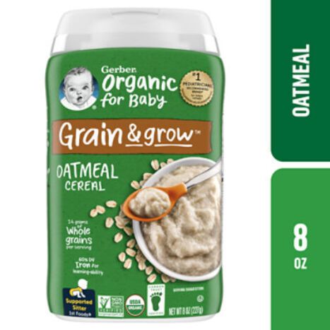 Organic Whole Grain Oat Flour (Contains Wheat), Vitamins and Minerals: Calcium Carbonate, Choline Bitartrate, Vitamin C (Ascorbic Acid), Iron (Electrolytic), Zinc Sulfate, Vitamin E (Alpha Tocopheryl Acetate), Niacinamide, Vitamin B2 (Riboflavin), Vitamin B1 (Thiamine Mononitrate), Vitamin B6 (Pyridoxine Hydrochloride), Folic Acid, Vitamin B12.