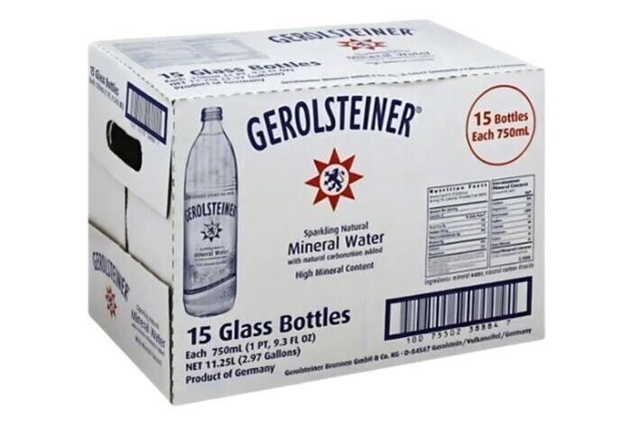 Gerolsteiner - Sparkling Mineral Water Glass Bottle (750ml) - Pack of 15