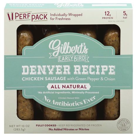 Gilbert's Sausage, Chicken, Denver Recipe, with Green Pepper & Onion, Perf Pack - 10 Ounces