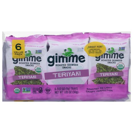 gimMe Seaweed Snacks, Roasted, Teriyaki, 6 Value Pack - 6 x 0.17 Ounces