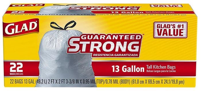 Glad 13 Gallon Tall Drawstring Kitchen White Trash Bags - 22 Count
