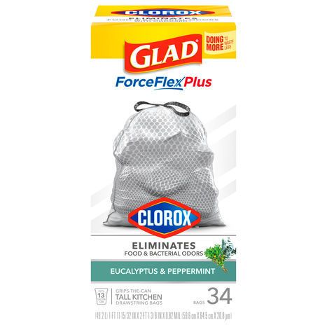 Glad Tall Kitchen Bags, Drawstring, Grips-The-Can, Eucalyptus & Peppermint, 13 Gallon - 34 Bags