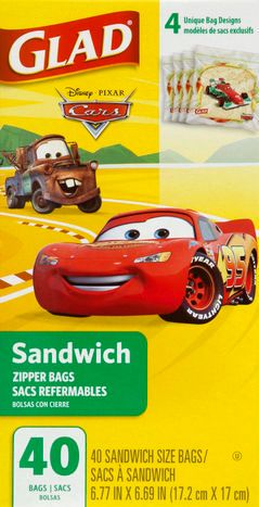 Glad Zipper Bags, Sandwich, Disney Pixar Cars - 40 Bags