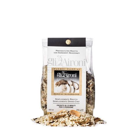 Ingredients: Carnaroli Rice 90%, vegetable stock mix, Porcini mushrooms 3%, Onion, Garlic, Parsley.