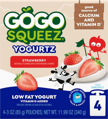GoGo Squeez Low Fat Strawberry Yogurtz - 4 x 3 Ounces