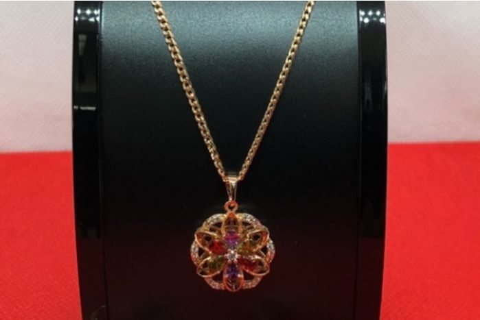 GOLD PLATED SET PENDANT AND MATCHING EARRINGS CHAIN IS 24IN