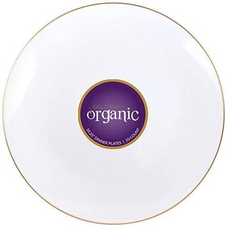 Gold Rim Organic Plastic White Dinner Plates - 10 Count (10.25 Inches Each)