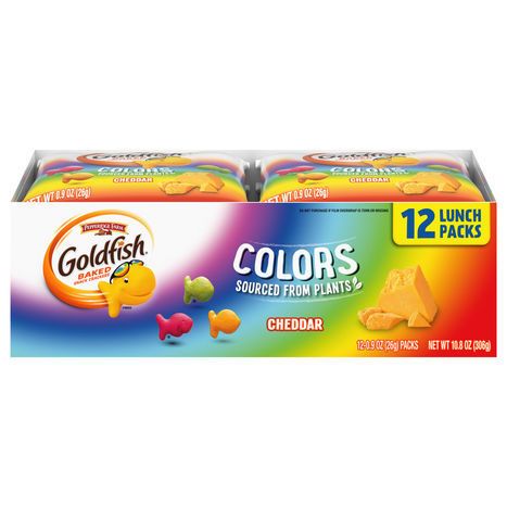 Goldfish Baked Snack Crackers, Cheddar, Colors, 12 Lunch Packs - 12 x 0.9 Ounces