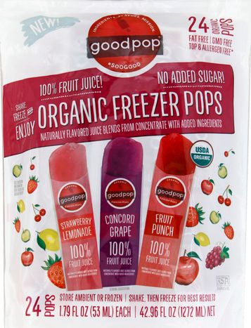GoodPop Freezer Pops, Organic, Strawberry Lemonade, Concord Grape, Fruit Punch - 24 x 1.79 Fluid Ounces