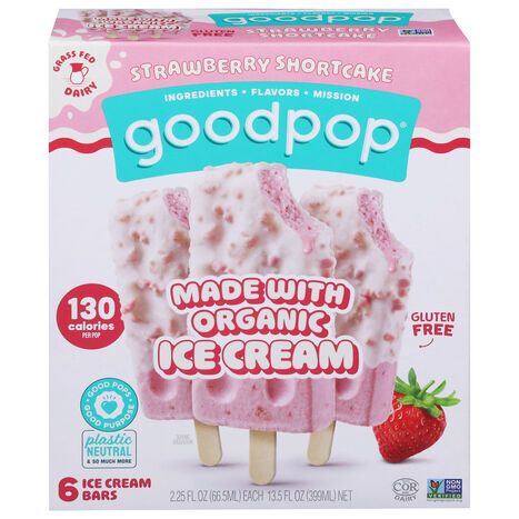 GoodPop Ice Cream Bars, Strawberry Shortcake - 6 x 2.25 Fluid Ounces