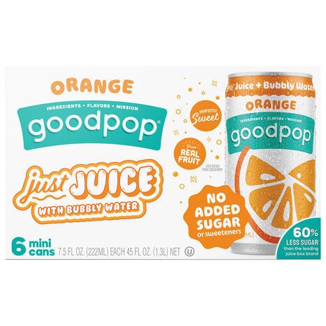 GoodPop Juice, with Bubbly Water, Orange, Mini - 6 x 7.5 Fluid Ounces