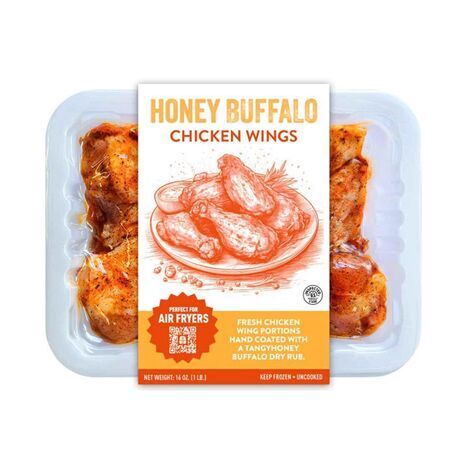 Get ready for a flavor explosion with our Honey Buffalo Marinated Chicken Wings! These ready-to-cook wings are perfectly prepped for a sweet, spicy, and satisfying meal. Bone-In Chicken Wings Canola Oil Honey Buffalo Rub (Cane Sugar Salt Honey Spices Food Starch-Modified Dehydrated Garlic Dehydrated Onion Citric Acid Oleoresin Paprika Parsley)..