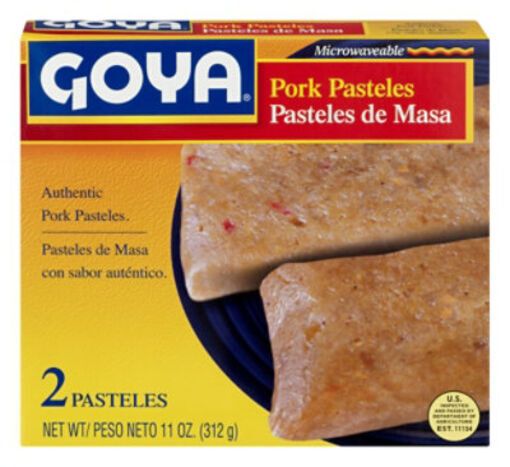 Water, Grated Plantains (Grated Plantains, Sodium Metasulphite), Pork, Red Pepper (Red Pepper, Water, Salt, Sugar, Citric Acid And Calcium Chloride), Green Pepper (Green Pepper, Water, Salt, Sugar, Citric Acid And Calcium Chloride), Corn Starch, Soybean Oil, Onion, Garlic, Green Olives (Green Olives, Water, Salt And Acid Lactic), Monosodium Glutamate, Salt, Brown Sugar, Tomato Paste, Xanthan Gum, Seasoning Blend (Salt, Garlic Powder, Onion Powder, Spices, Annatto, Yeast Extract, Sugar And Turmeric) And Black Pepper.