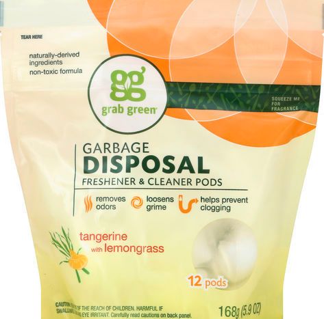 Grab Green Garbage Disposal Freshener & Cleaner Pods, Tangerine with Lemongrass - 12 Pods