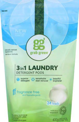 Grab Green Laundry Detergent Pods, 3in1 Fragrance Free - 15.2 Ounces