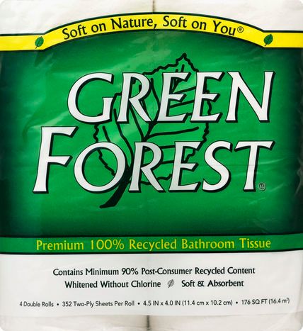 Green Forest Bathroom Tissue, Premium 100% Recycled, Double, Two-Ply - 4 Rolls