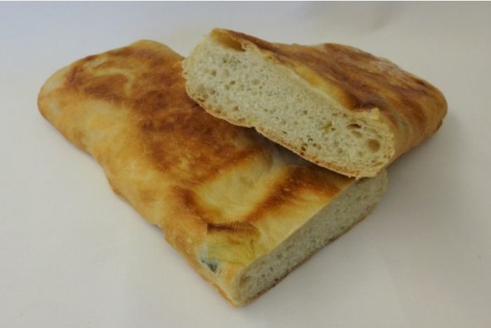 Roasted yellow and green onions mixed into a French dough with extra virgin olive oil. A soft, pillowy loaf great for making sandwiches or tearing into and devouring on its own