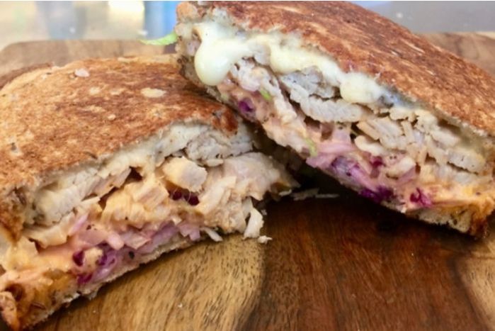 Our fresh roasted turkey version of the Rachel with baby Swiss cheese, fresh made cole slaw, and Russian dressing and grilled just enough to meld the flavors.