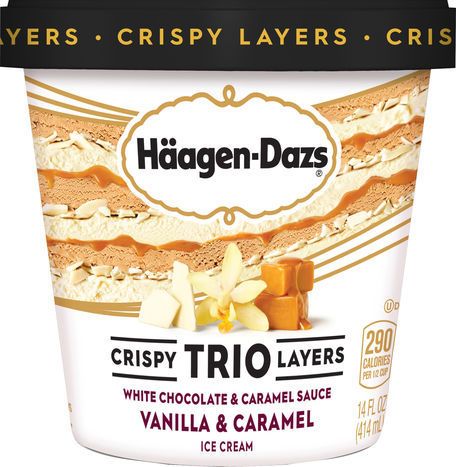 Haagen-Dazs Ice Cream, Trio Crispy Layers, White Chocolate & Caramel Sauce, Vanilla & Caramel - 14 Fluid Ounces