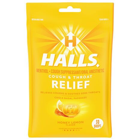 Halls Drops Honey Lemon Flavor Cough & Throat Relief - 30 Drops
