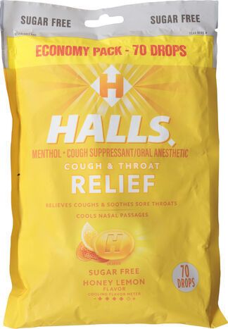 Halls Sugar Free Honey Lemon Flavor Cough & Throat Relief Economy Pack - 70 Drops