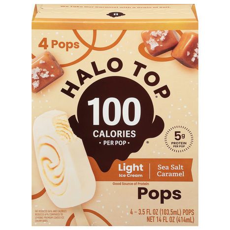 Halo Top Ice Cream Pops, Light, Sea Salt Caramel - 4 x 3.5 Fluid Ounces
