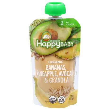 Happy Baby Organic 2 (6+ Months) Banana, Pineapple, Avocado & Granola Baby Food - 4 Ounces
