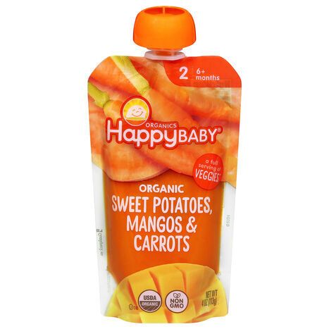 Happy Baby Organic 2 (6+ Months) Sweet Potatoes, Mangos & Carrots Baby Food - 4 Ounces
