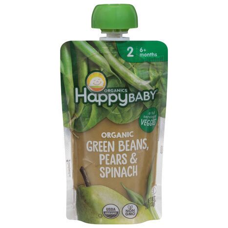 Happy Baby Organic Stage 2 (6+ Months) Green Beans, Pears & Spinach - 4 Ounces