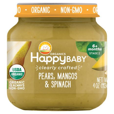 Happy Baby Pears, Mangos & Spinach, Stage 2 (6+ Months) - 4 Ounces