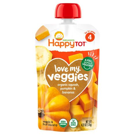 Happy Tot 4 (for 2+ Years) Organic Squash, Pumpkin & Bananas Toddler Veggie & Fruit Blend - 4.22 Ounces