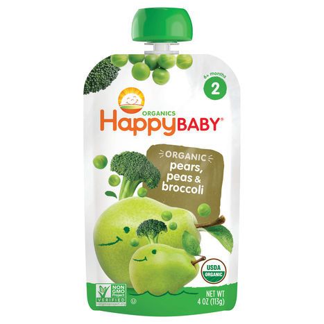 HappyBaby Baby Food, Organic, Pears, Peas & Broccoli, 2 (6+ Months) - 4 Ounces