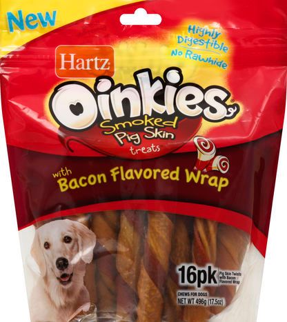 Hartz Pig Skin Treats, with Bacon Flavored Wrap, Smoked - 16 Treats