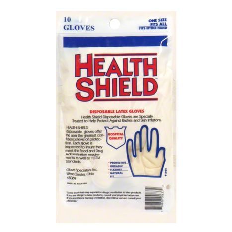 HEALTH SHIELD Disposable Latex Gloves, Powder Free