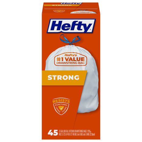 Hefty Tall Kitchen Bags, Drawstrings, Strong, 13 Gallon - 45 Bags