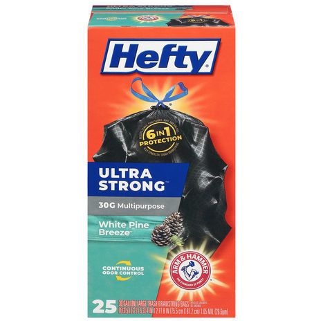 Hefty Trash Bags, Drawstring, Multipurpose, White Pine Breeze, Large, 30 Gallon - 25 Bags