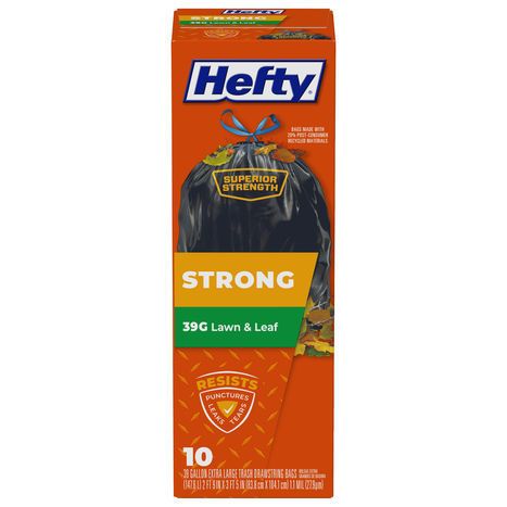 Hefty Trash Bags, Drawstring, Strong, Extra Large, 39 Gallon - 10 Bags