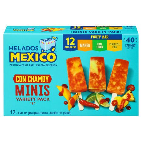 Helados Mexico Fruit Bars, Premium, Minis, Mango/Lime/Pineapple, Variety Pack - 12 x 1.5 Fluid Ounces