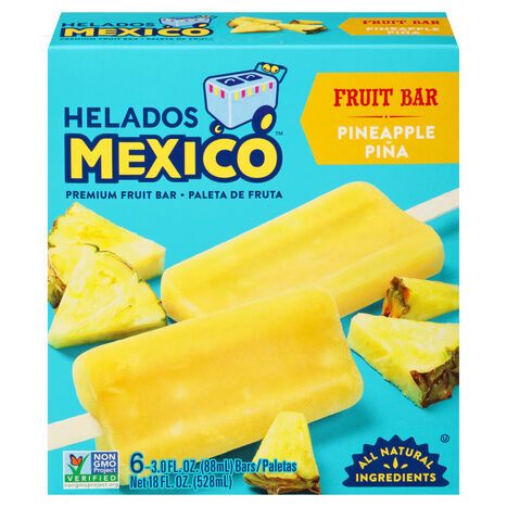 Helados Mexico Fruit Bars, Premium, Pineapple - 6 x 3 Fluid Ounces