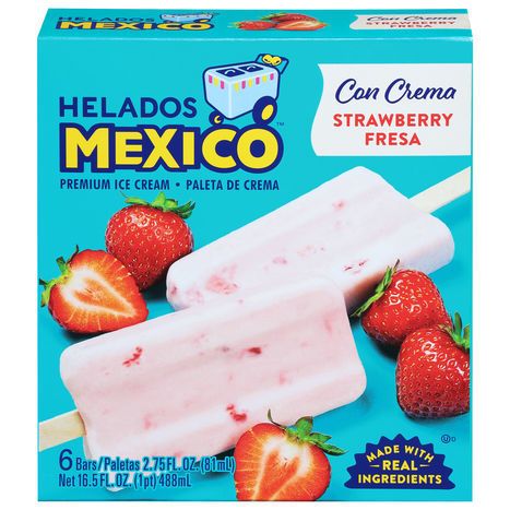 Helados Mexico Ice Cream Bars, Premium, Strawberry - 6 x 2.75 Fluid Ounces