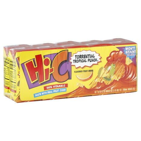 Hi-C Fruit Drink, Torrential Tropical Punch Flavored - 10 x 6.75 Fluid Ounces