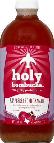 Holy Kombucha Tea, Raw Fizzy Probiotic, Raspberry Pomegranate - 16.9 Fluid Ounces